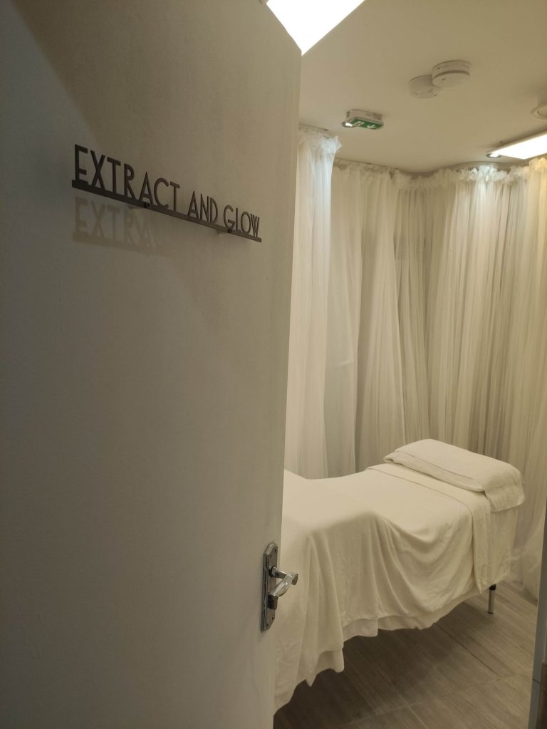 Once inside, look to your left — the staircase leads downstairs to a calm basement where several independent therapists have their rooms. Extract & Glow awaits at the very end of the corridor. Step through our door, and leave the world above behind. Soft lighting, subtle fragrance, and quiet luxury create the perfect atmosphere for your skin to glow.